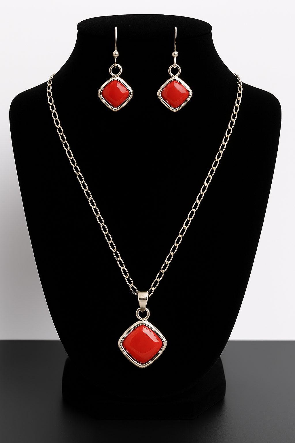 Descubre la sofisticación moderna con nuestro exclusivo Conjunto Cadena y Aros Rojos, una propuesta que redefine la elegancia geométrica en la joyería contemporánea. Este set está compuesto por una cadena de diseño minimalista y aros cuadrados en tono rojo intenso, perfectamente equilibrados con acabados dorados que realzan su carácter refinado. Diseñado para quienes buscan piezas versátiles y memorables, el conjunto fusiona líneas limpias, texturas delicadas y proporciones ideales para crear un impacto visual discreto pero poderoso.