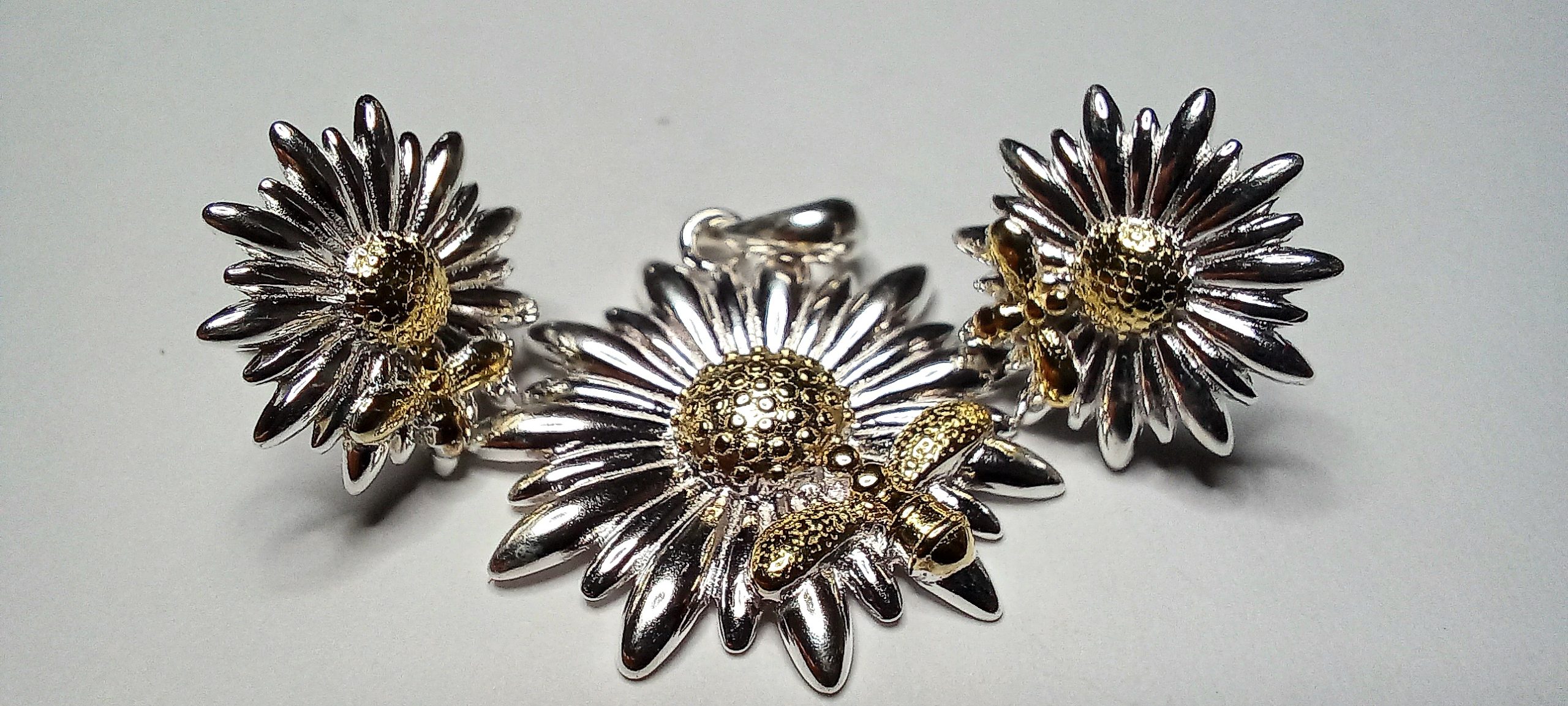 Cada conjunto es una expresión única de la delicadeza floral, elaborado con cuidado y detalle para capturar la esencia de la naturaleza en cada pieza. Algunos conjuntos presentan diseños más sencillos, resaltando la belleza simple de la plata, mientras que otros incorporan circones blancos para un toque adicional de brillo.