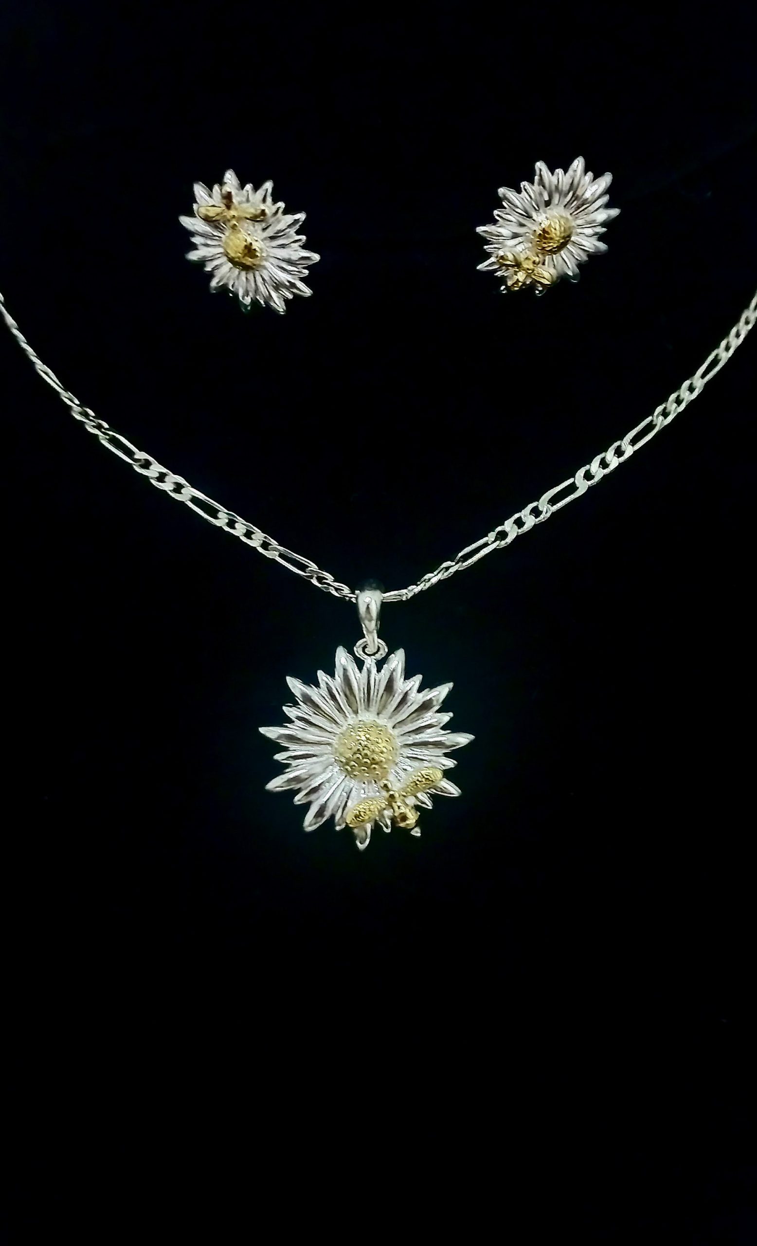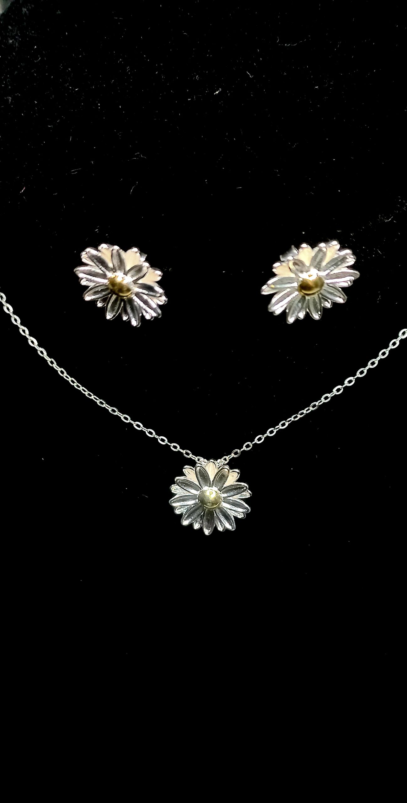 Explora la exquisita belleza floral con nuestra colección de conjuntos de plata 925k, cada uno compuesto por un encantador dije floral y un par de aros, y en algunos casos, una cadena que completa la armonía del diseño. La plata 925k, conocida por su brillo atemporal y durabilidad, se une a la gracia de las flores para crear piezas que resaltan la elegancia natural.